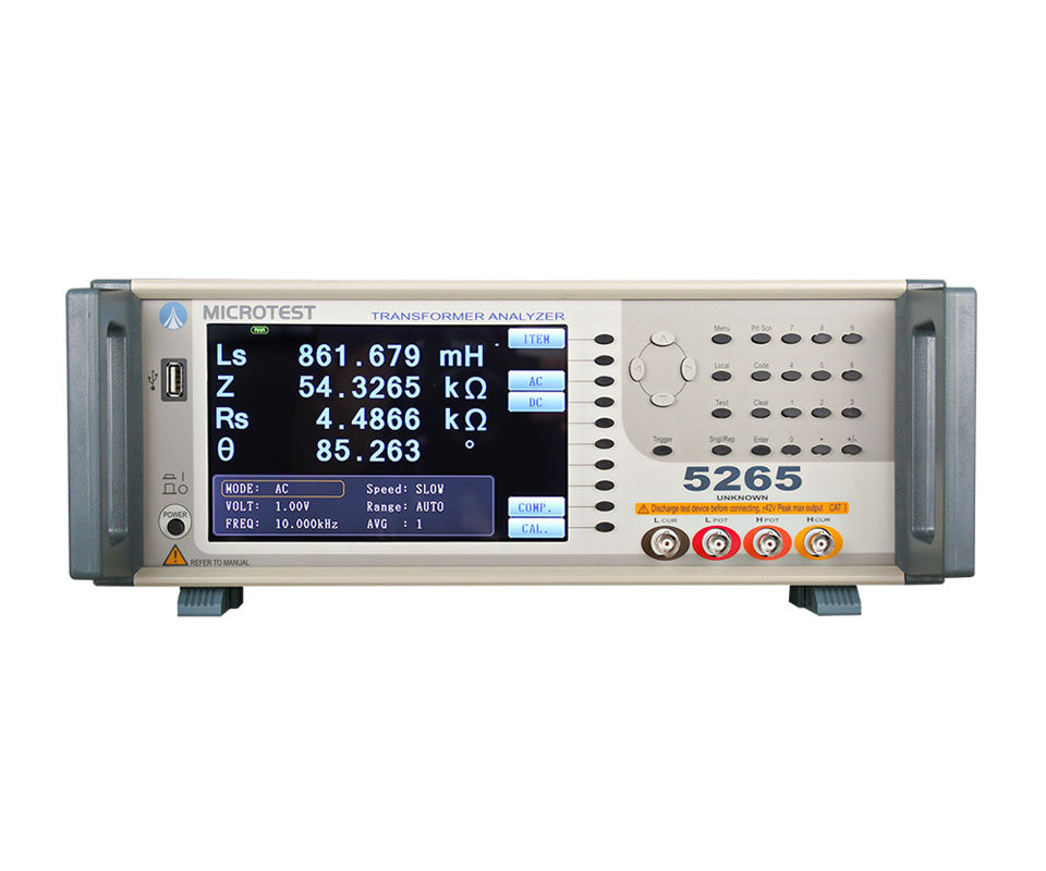 益和 5265 變壓器, 測試頻率為 10Hz-200kHz,測試點位為20點?;揪珳?zhǔn)度 ±0.1%,搭配F5620測試治具(含100mA直流偏置電流)。內(nèi)建可儲存128組測試檔案。支援RS-232、Handler、LAN、USB Host等介面。適用于各種變壓器進(jìn)料、檢驗、品保等檢測部門。