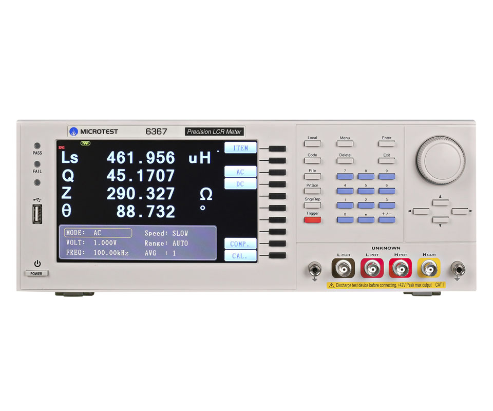 6367經(jīng)濟(jì)型 LCR 電橋具備高精確度、速度,且經(jīng)濟(jì)型多功能,測試頻率范圍從10Hz~1MHz?;揪_度±0.05%,螢?zāi)划嬅婵梢酝瑫r顯示四個參數(shù)。具多步列表功能,最多可以設(shè)定8組。低頻率6365A(0.1Hz~200kHz)可量測容量大的鋁電解電容。支援USB Host、RS-232、GPIB、Handler、LAN等介面。可選購電腦連線軟體進(jìn)行圖形繪圖分析。適用于生產(chǎn)制造、品?;蜻M(jìn)料檢驗(yàn)或自動化檢測部門。